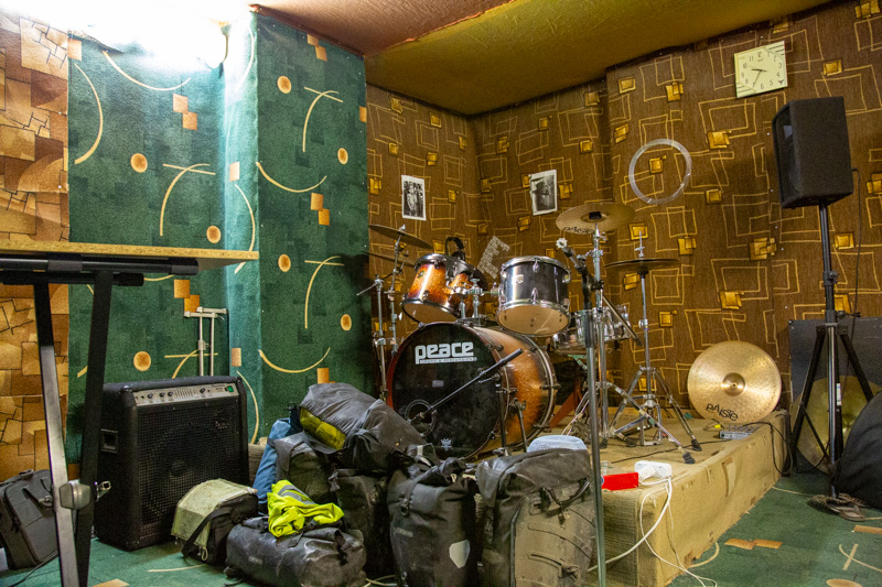 I followed the men up an open stairway to the third landing, then a narrow flight of steps to the attic, where Sasha, the junior of the group, lived in his music studio—a disordered scene of instruments and sound gear, littered with gig flyers and posters, cigarette butts and liquor bottles. There was no heating or basic amenities other than the public facility on the second floor.