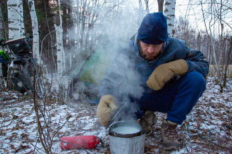 I roused from sleep shivering. For a moment I studied the shadowy deposits of snow sagging the ends of my tent. Another winter. Has it been this long? Wearing every scrap of clothing, I slipped into the cheap, frozen hiking boots I’d bought in China, and crawled out into the grey October day. I made as much distance early as my stomach would allow, before pulling off the road muddied and hungry, and wincing at my painful toes. Wet snow penetrated my clothes, chilling me to the core as I crouched, waiting for my pot to boil.